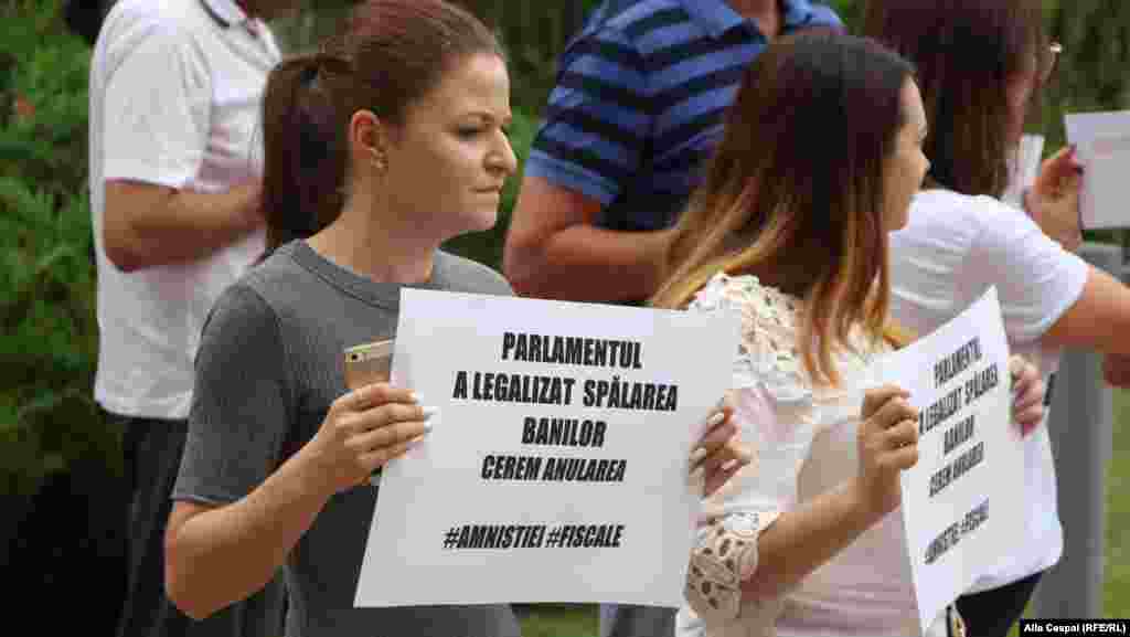 Protestatarilor li s-au alăturat juriştii Asociaţiei Promo-LEX şi reprezentanţi ai altor ONG-uri care au condamnat în ajun printr-o declaraţie amnistia fiscală, despre care spun că „încurajează beneficiarii de venituri din corupție și crimă”. Adoptarea legii care va legaliza averile și capitalurile nedeclarate a fost criticată joi de Ambasada SUA, FMI şi Delegaţia UE.