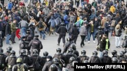 După ce activistul anticorupție Aleksei Navalnîi a fost arestat la protestul din centrul Moscovei, o mulțime de demonstranți a încercat să blocheze autobuzul în care acesta fost urcat de către poliție.