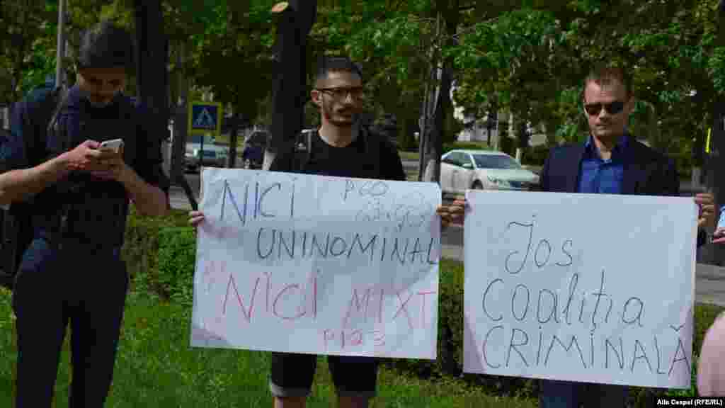 Zeci de activiști au protestat în fata Parlamentului împotriva introducerii sistemului de vot uninominal, aprobat de legislativ în prima lectură. A fost un protest spontan, inițiat de mai multe organizații nonguvernamentale cunoscute din R.Moldova.