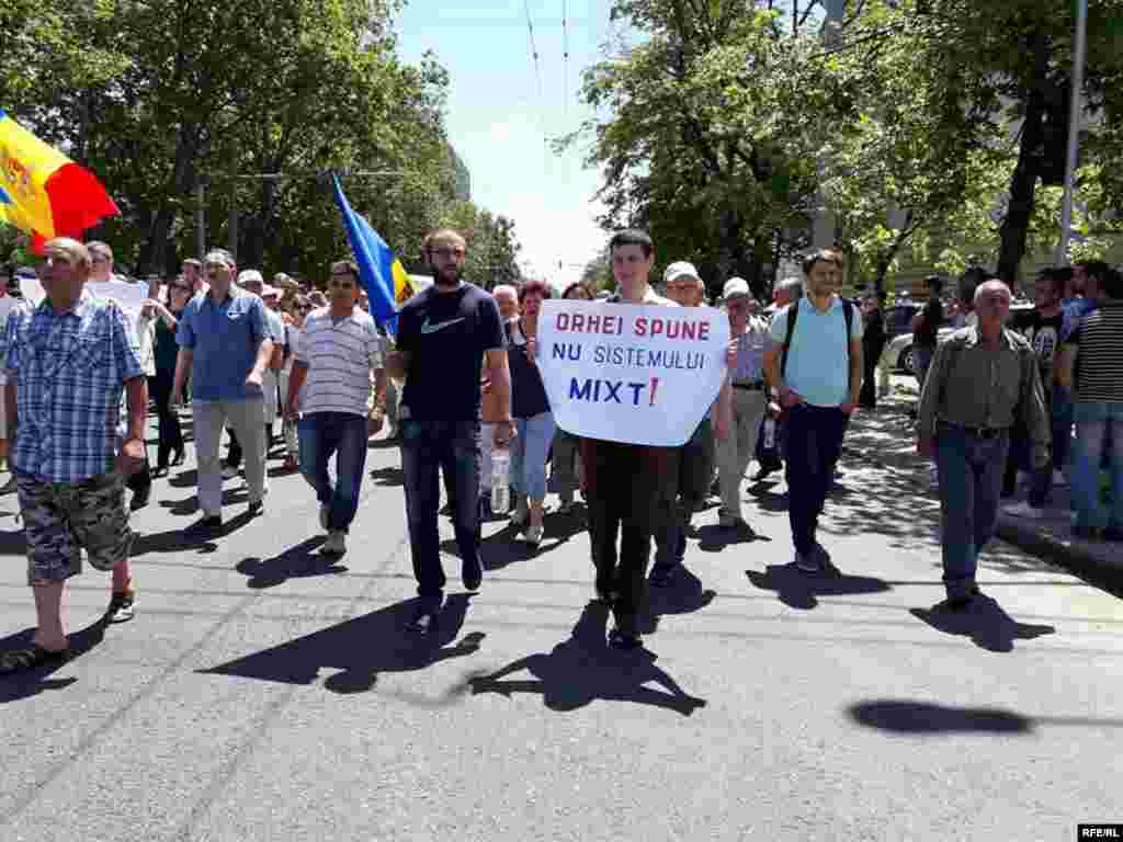 Mai multe organizații ale societății civile au organizat la Chișinău un nou protest împotriva schimbării sistemului electoral. Protestul de duminică e susținut de mai multe partide politice: Partidul Platforma DA, Partidul Acțiune și Solidaritate, ambele din opoziția extraparlamentară, și PLDM (galerie foto de Alla Ceapai).