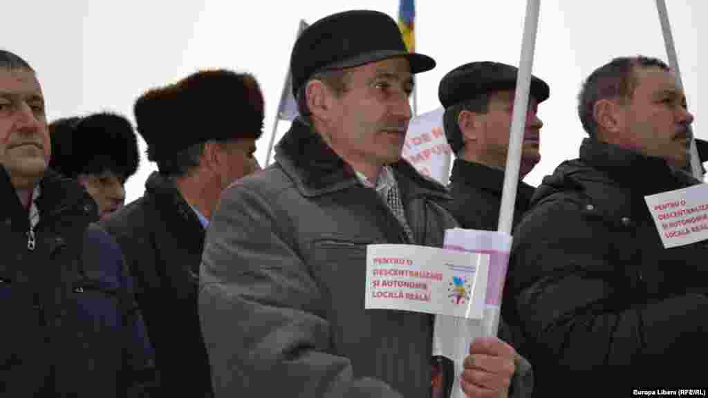 De ziua profesională a Autonomiei Locale şi lucrătorului din cadrul Administraţiilor publice locale zeci de primari din Moldova s-au adunat în Piaţa Marii Adunări Naţionale de la Chișinău pentru a participa la o acţiune paşnică. Aleşii locali atenţionează autorităţile centrale că lipsesc acţiuni şi rezultate concrete în domeniul consolidării autonomiei locale, comunicarea este una defectuoasă iar salariul acestora nu acoperă , nici pe departe minimul de existenţă. (Foto: Tamara Grejdeanu)