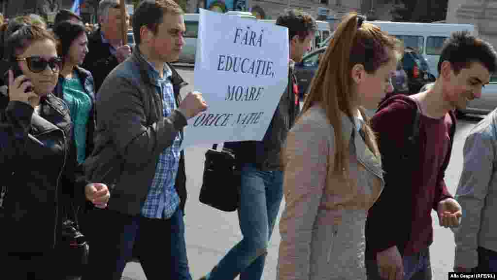 Câteva sute de sindicaliști din educație și cadre didactice au ieșit din nou în stradă, cerând salarii mai mari și amenințând cu întreruperea procesul de studii. Participanţii la acţiunea de protest au mers în marș de la Academia de Ştiinţe şi până la sediul Guvernului scandând „Salarii decente!”, „Vrem salariile mari ca la parlamentari!” şi „Grevă generală!”. Ministra Educaţiei, Corina Fusu, a ieşit în faţa mulţimii, dar a reuşit să interacţioneze doar cu jurnaliştii, în timp ce mulţimea scanda „Ruşine!” şi „Demisia!” Corina Fusu a declarat că parte din revendicările profesorilor au fost deja îndeplinite, iar pentru celelalte, inclusiv majorarea cu 50% a salariilor, guvernul nu a identificat deocamdată resurse. Sindicaliștii din educaţie poartă de două luni negocieri cu guvernul. Tratativele nu au adus însă sindicaliștilor rezultate dorite. Au reuşit să obţină deocamdată o majorare salarială de doar 10% şi o majorare a îndemnizaţiilor pentru tinerii specialişti. Ei am ameninţat azi că ar putea întrerupe procesul de studii, dacă guvernul nu le va satisface revendicările.