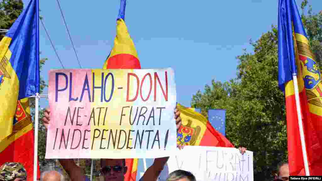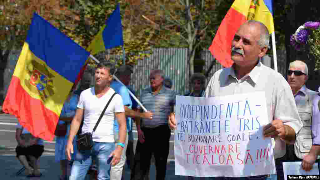 În paralel cu evenimentele oficiale dedicate Zilei Independenței Republicii Moldova, cîteva zeci de persoane au protestat la Chișinău împotriva guvernului. Acțiunea de protest a fost inițiată de Uniunea pensionarilor. Galerie foto de Tatiana Ețco.