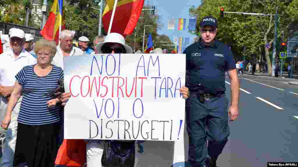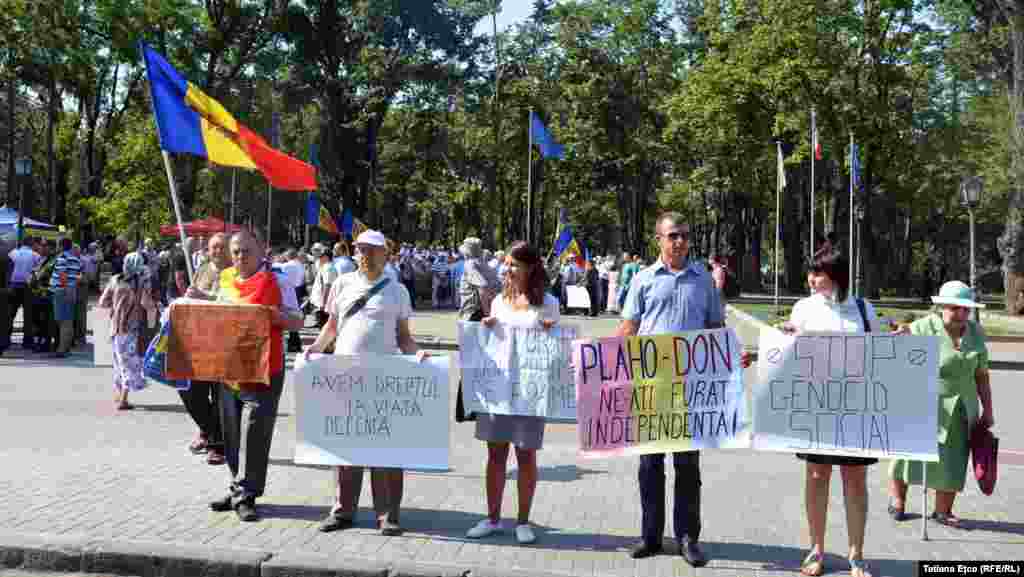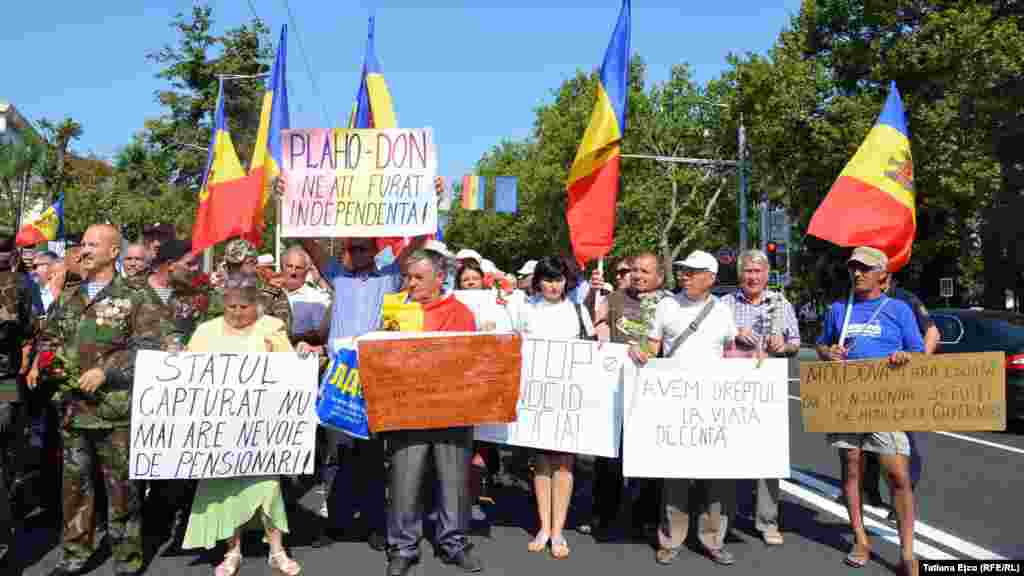În paralel cu evenimentele oficiale dedicate Zilei Independenței Republicii Moldova, cîteva zeci de persoane au protestat la Chișinău împotriva guvernului. Acțiunea de protest a fost inițiată de Uniunea pensionarilor. Galerie foto de Tatiana Ețco.
