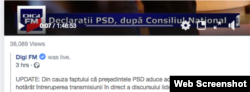 Să consemnăm în închiere o posibilă premieră în lumea mediatică din România: postul de radio Digi FM a anunțat că întrerupe transmiterea în direct a liderului PSD Liviu Dragnea, din cauză că acesta formulează acuzații nefondate.