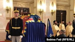 În Sala Tronului, un sobor de preoți cântă cântece bisericești și spun rugăciuni, în vreme ce, în liniște, în fața sicriului îngenunchează rând pe rând, oamenii care au așteptat afară mai mult de două ore, iar la plecare, mulți scriu în cărțile de condoleanțe.