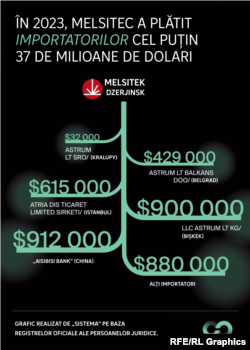 Aceste companii acționează ca achizitori formali de componente de producție de la furnizori din întreaga lume. Totuși, conform datelor vamale analizate de „Sistema”, produsele nu ajung nici în Bișkek, nici în Istanbul, ci sunt trimise direct în Rusia, la „Melsitek”.