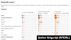Datele furnizate de Biroul Național de Statistică arată că în luna aprilie prețurile au crescut cu peste 27 la sută față de aceeași perioadă a anului trecut, majorarea față de luna martie a acestui an depășind 5 %. Cea mai mare diferență de prețuri se atestă la produsele alimentare, în special la legume, carne, produse lactate și pâine. S-au scumpit și mărfurile nealimentare, la carburanți și materiale de construcții inclusiv prețul serviciilor prestate populației.