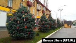 În piața centrală a Benderului, unde este instalat un brad artificial, este puțină lume. Străzile orașului sunt decorate foarte modest.
