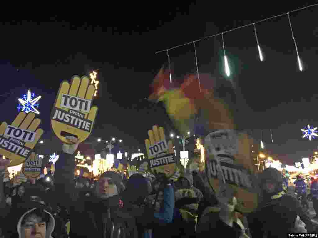 Mii de oameni protestează, duminică, în Piața Victoriei de la București, împotriva proiectelor de modificare a legilor justiției. Manifestația vine în continuarea demonstrațiilor din ultimele săptămâni, îndreptate împotriva tentativei guvernului dominat de social-democrați de a mări controlul politicienilor asupra justiției prin modificarea unor legi, în ciuda avertismentelor opoziției politice, societății civile și partenerilor occidentali ai României.