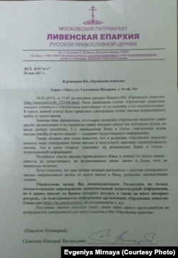 30 мая секретарь епископа Ливенского и Малоархангельского Нектария отец Александр заявил, что епископ Нектарий не имеет никаких претензий к "Орловским новостям", а его письмо было фейком. Об этом же сам епископ сказал в интервью радиостанции "Эхо Москвы".