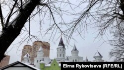 И это действительно оказалось очень близко, сразу за МКАД. Там забавное соседство торгового центра под названием Vegas с совхозом имени вождя мирового пролетариата. Территория совхоза окружена оградой, но вход и въезд совершенно свободный. И вот мы вошли. И нам понравилось абсолютно все, что удалось увидеть тогда на очень поверхностный воскресный взгляд. Нас, во-первых, сразу впечатлило здание детского садика, потому что такие замки для детей обычно не строят, строят для "новых русских".