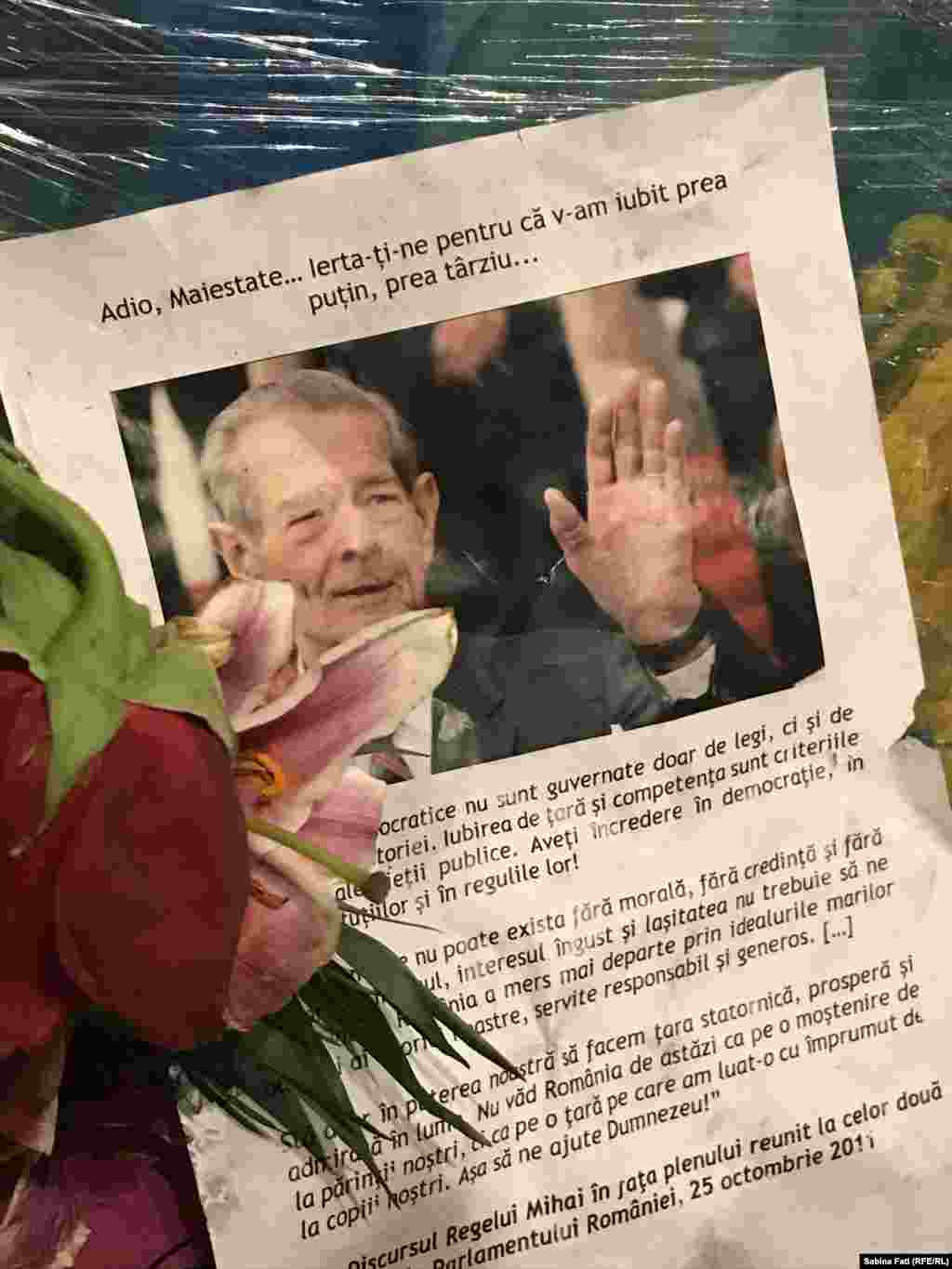Sicriul cu trupul neînsufleţit al Regelui Mihai este depus la Palatul Regal de la București. Sîmbătă, după slujba de la Catedrala Patriarhală din București, sicriul va fi dus, cu trenul regal, la Curtea de Argeș, unde va fi înmormântat Regele Mihai.