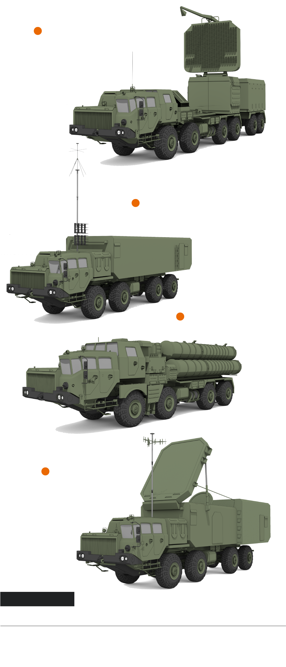 Radarul de detectare identifică ținte aeriene și trimite date către centrul de comandă și control.