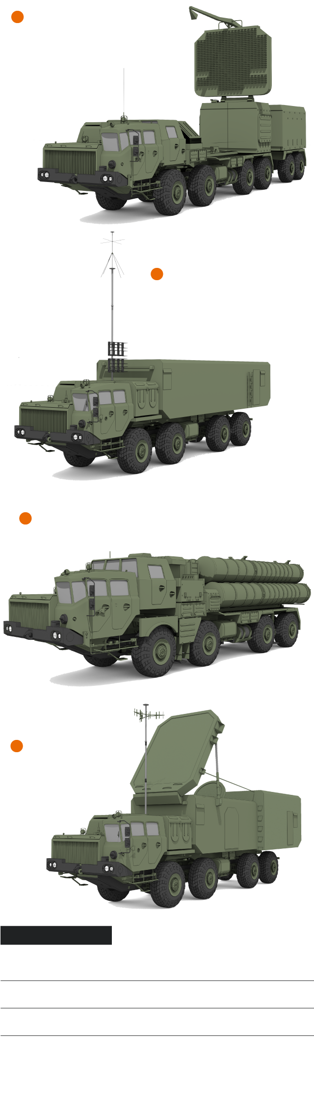 Radarul de detectare identifică ținte aeriene și trimite date către centrul de comandă și control.