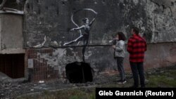 Renumitul artist de graffiti Banksy a dezvăluit pe Instagram o pictură murală cu o fată gimnastă care face echilibristică pe o mică grămadă de moloz de beton în orașul ucrainean Borodianka, care a fost ocupat de Rusia până în aprilie și care a fost grav avariat în primele zile de lupte.