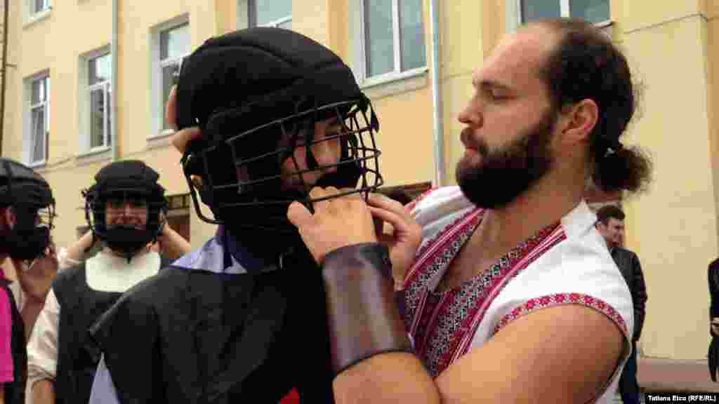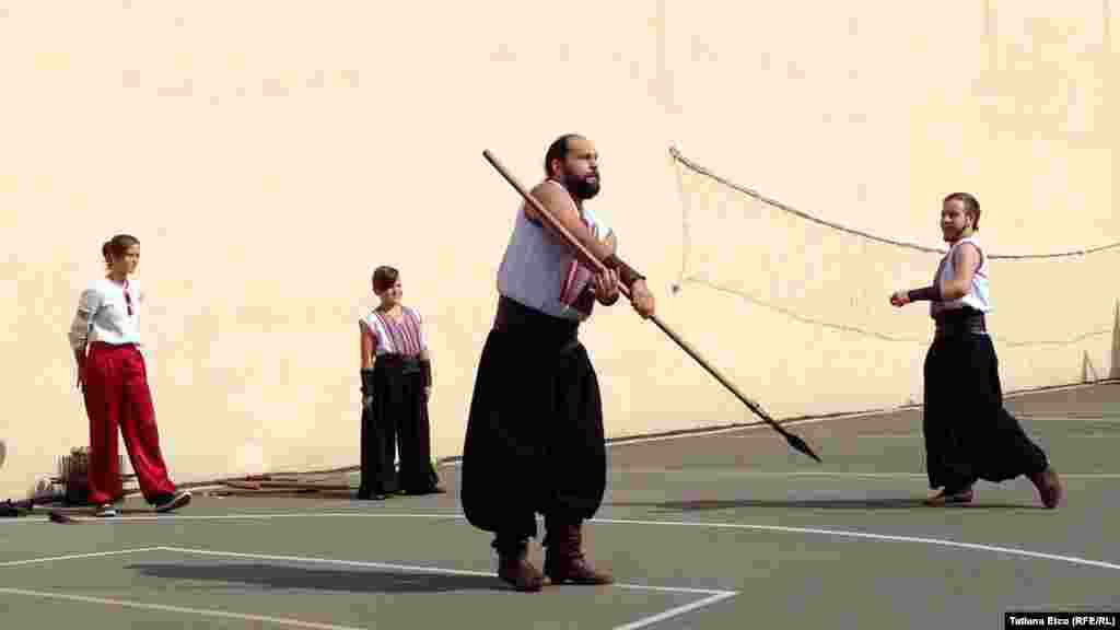 Reprezentanţii unei organizaţii de scrimă tradiţională a cazacilor din Kameneţ-Podolsk, Ucraina, au prezentat tehnici de luptă căzăcească la liceul Mihail Koţiubinski din Chişinău.
