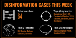 Dezinformarea e deseori o oglindă a fluxului de știri. Iată de ce e posibil să nu surprindă că dezinformarea din această săptămână se referă considerabil la evenimente din Statele Unite. Între țintele frecvente: politica față de Rusia a lui Joe Biden, Covid-19 și presupusele planuri ale establishment-ului american de a abuza de pandemie pentru falsificarea alegerilor prezidențiale din Statele Unite.
