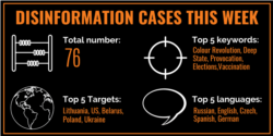 Ocupată să relateze despre evenimente globale prin lentila dezinformării, media pro-Kremlin a găsit totuși timp ca să reia tema „războaielor vaccinului”. Occidentul, ni se spune, se opune vaccinului Sputnik V din cauză că îi frică de competiție. Uniunea Europeană a fost acuzată că refuză să cumpere vaccinul din rațiuni politice, NATO a fost acuzat că ar fi vrut să țină Rusia sub control prin discreditarea vaccinului rusesc, în timp ce Ucraina a fost acuzată de ceea ce media pro-Kremlin a descris drept distrugere planificată a propriului popor.