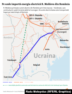 Republica Moldova nu are linii de înaltă tensiune care să o lege direct de România, iar electricitatea pe care o importă periodic de pe piața europeană este livrată prin linii electrice ocolitoare, care trec prin Ucraina, unde infrastructura energetică este bombardată tot mai intens de forțele ruse, dar și prin regiunea transnistreană. Această situație poate duce la apariția unor pene de curent la nivel național, așa cum s-a întâmplat și în toamna lui 2022.