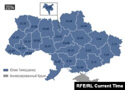 На территории Крыма провести голосование оказалось невозможным из-за аннексии полуострова Россией. Лишь около шести тысяч крымчан смогли проголосовать в других регионах Украины.
