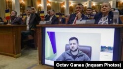 Adresându-se Parlamentului României, președintele Ucrainei Volodimir Zelenki, a pledat din nou pentru impunerea de sancțiuni economice și mai drastice Rusiei, a cerut mai mult ajutor militar pentru Ucraina și a avertizat că Ucraina nu este singura țintă a Rusiei în actualul război.
